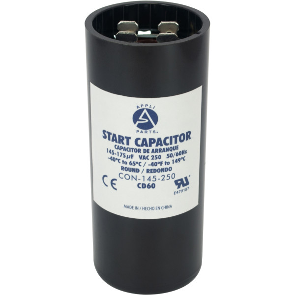Appli Parts CON-145-250 Capacitor de Arranque 145-175 MFD (microfaradios) uF, 250 VAC. Universal para Motores Electricos, condensador de arranque de 3.7 cm de Diametro, 8.6 cm de Alto