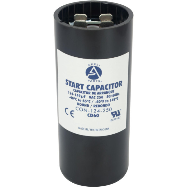 Appli Parts CON-124-250 Capacitor de Arranque 124-149 MFD (microfaradios) uF, 250 VAC. Universal para Motores Electricos, condensador de arranque de 3.7 cm de Diametro, 8.6 cm de Alto