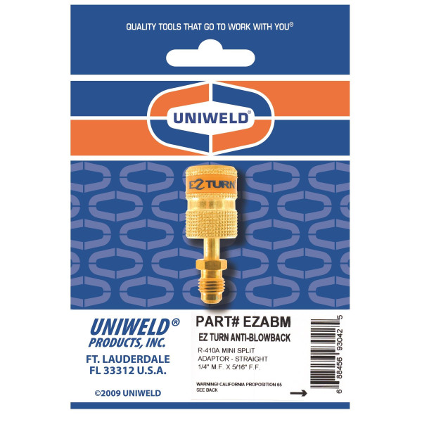 Uniweld EZABM Adaptador Ez-Turn Anti-Blowback 1/4 pulg MF X 5/16 pulg FF Para R-410a, CFC, HCFC y HFC